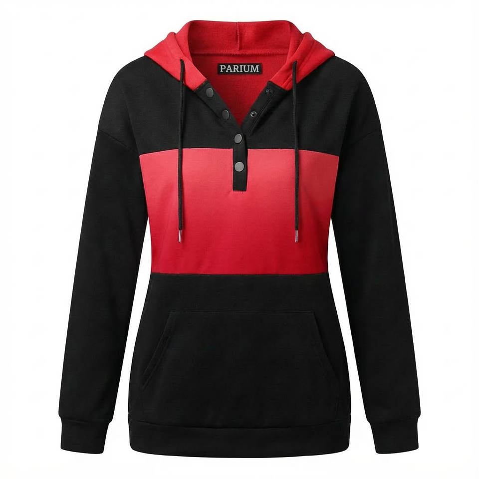 Sweat-shirts à capuche pour femmes sur mesure, col Henley, bouton, pull, poche kangourou, logo personnalisé, étiquette, taille, marque, coupe décontractée