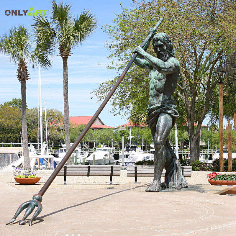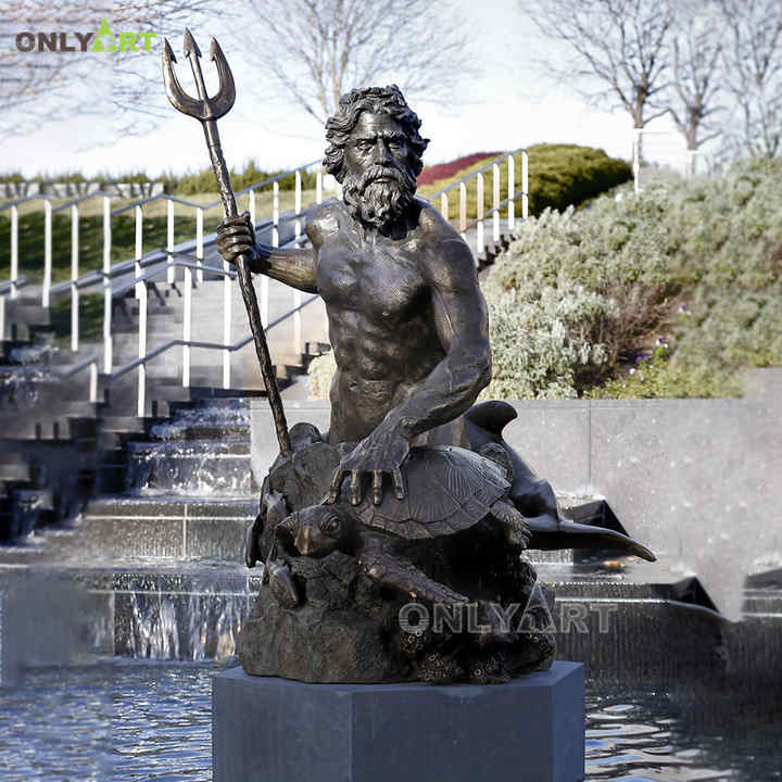 Grande sculpture en bronze de dieu poseidon de mythologie grecque sur mesure pour paysage de parc et de jardin extérieur