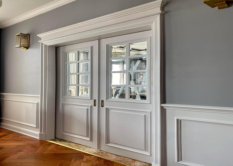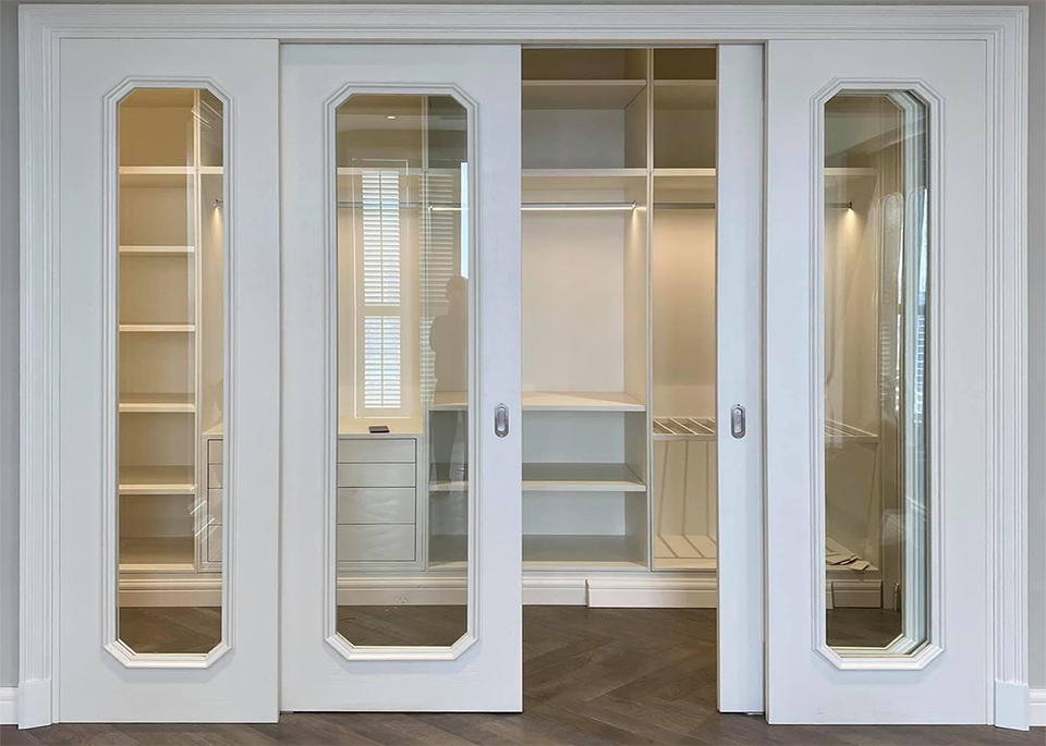 Grande porte coulissante invisible en bois sur mesure Design moderne pour hôtels Bois massif avec surface finie