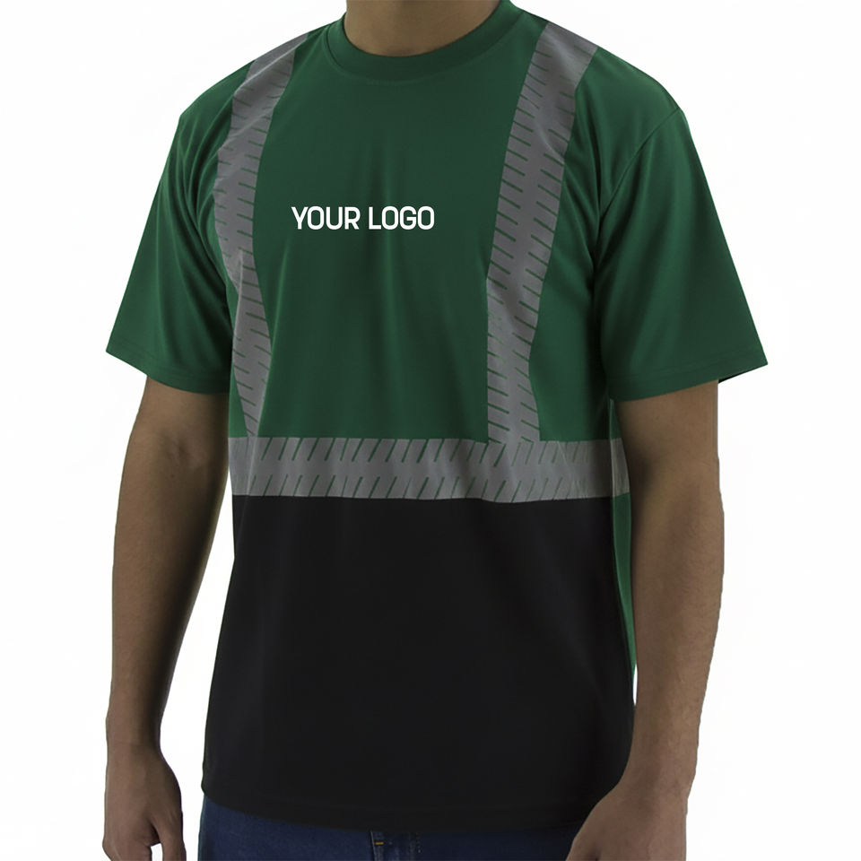 T-shirt de travail de sécurité en polyester léger sur mesure, jaune fluorescent, haute visibilité, col en V, bandes réfléchissantes, LED clignotante, ANSI/EN