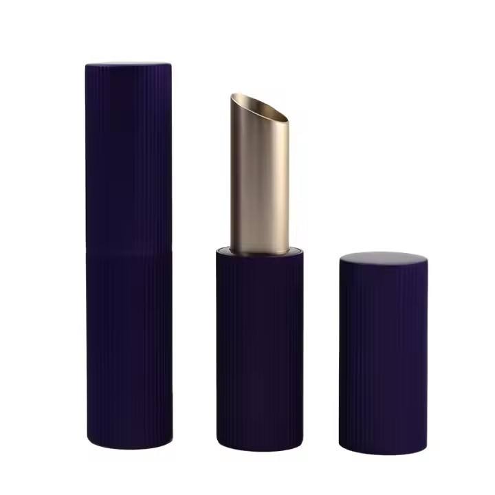 Tubes à lèvres sur mesure, coque extérieure en aluminium rayée magnétique ronde, remplissage inversé, emballage cosmétique