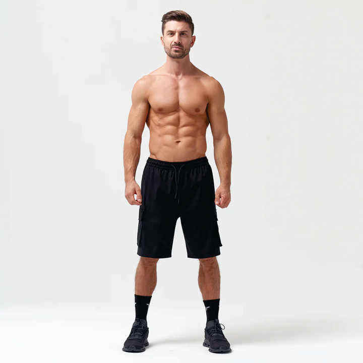 Shorts de sport décontractés pour hommes en tissu Oxford respirant à séchage rapide à taille haute avec logo personnalisé en polyester et coton