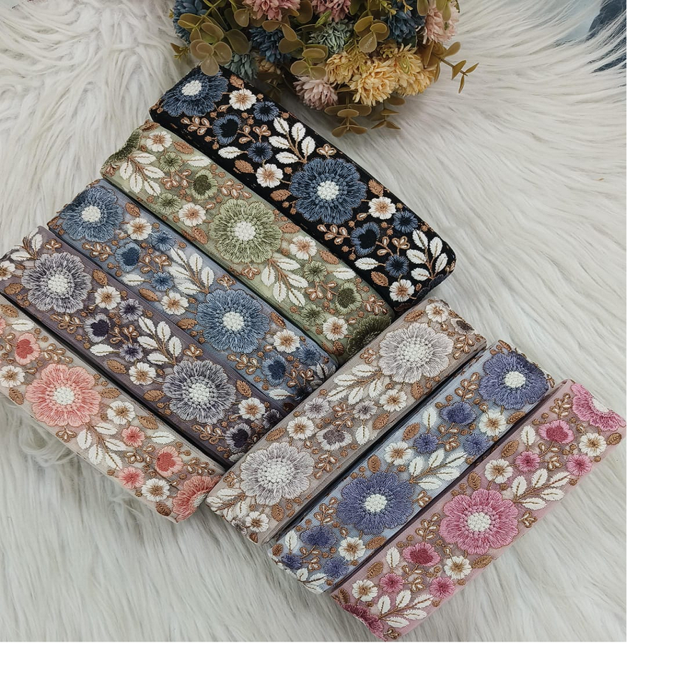 Rubans brodés à la machine sur mesure et lacets en motifs floraux et en huit couleurs pour robes de mariée de 1.5 pouces de largeur
