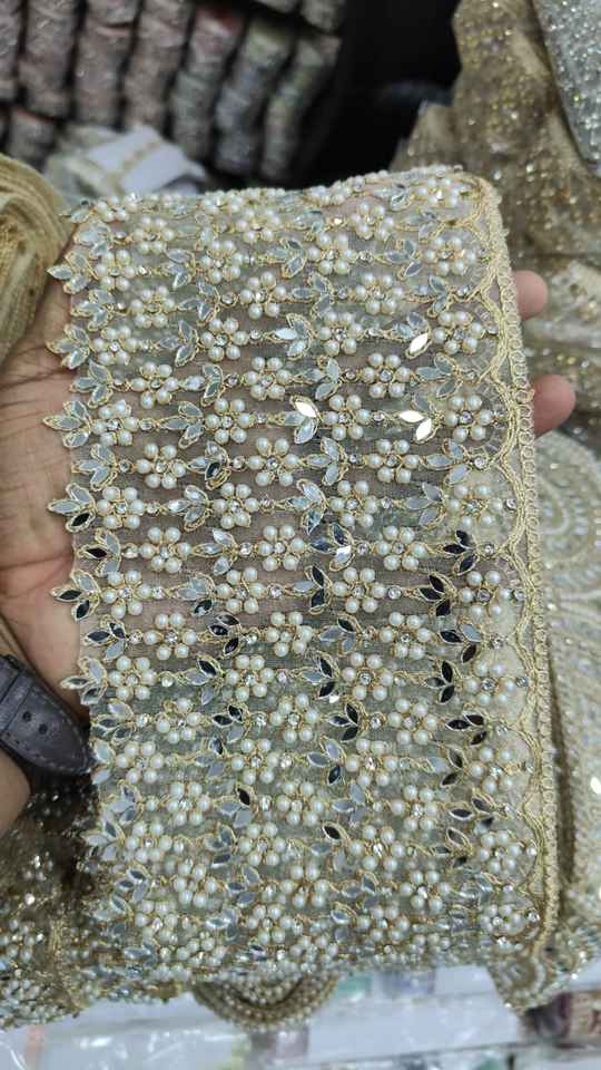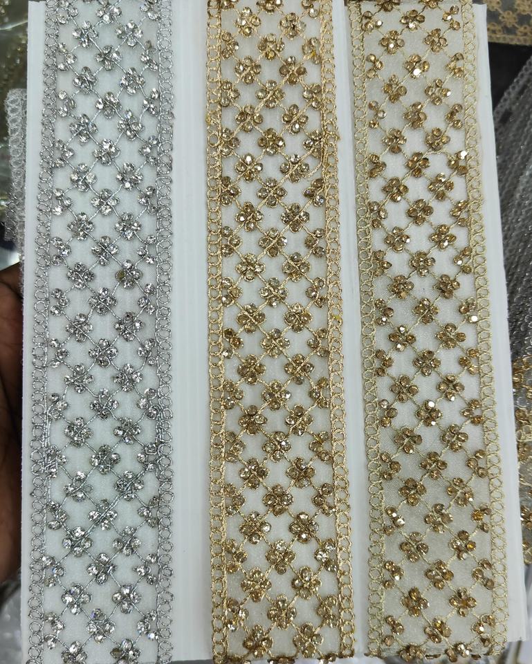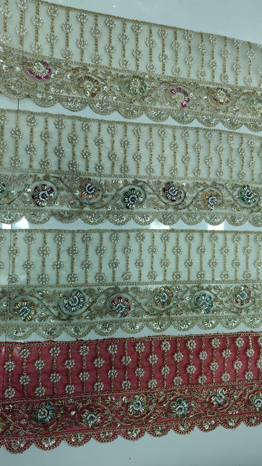 Rubans et dentelles brodés à la machine sur mesure avec motifs floraux et quatre couleurs pour robes de mariée de grande largeur