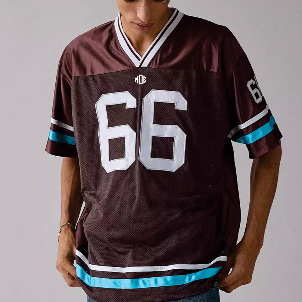 Maillot de football américain sur mesure pour homme en maille polyester, col en V, avec numéros en twill, style streetwear, production OEM en gros