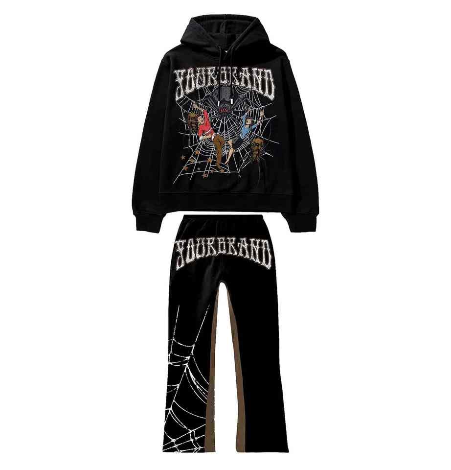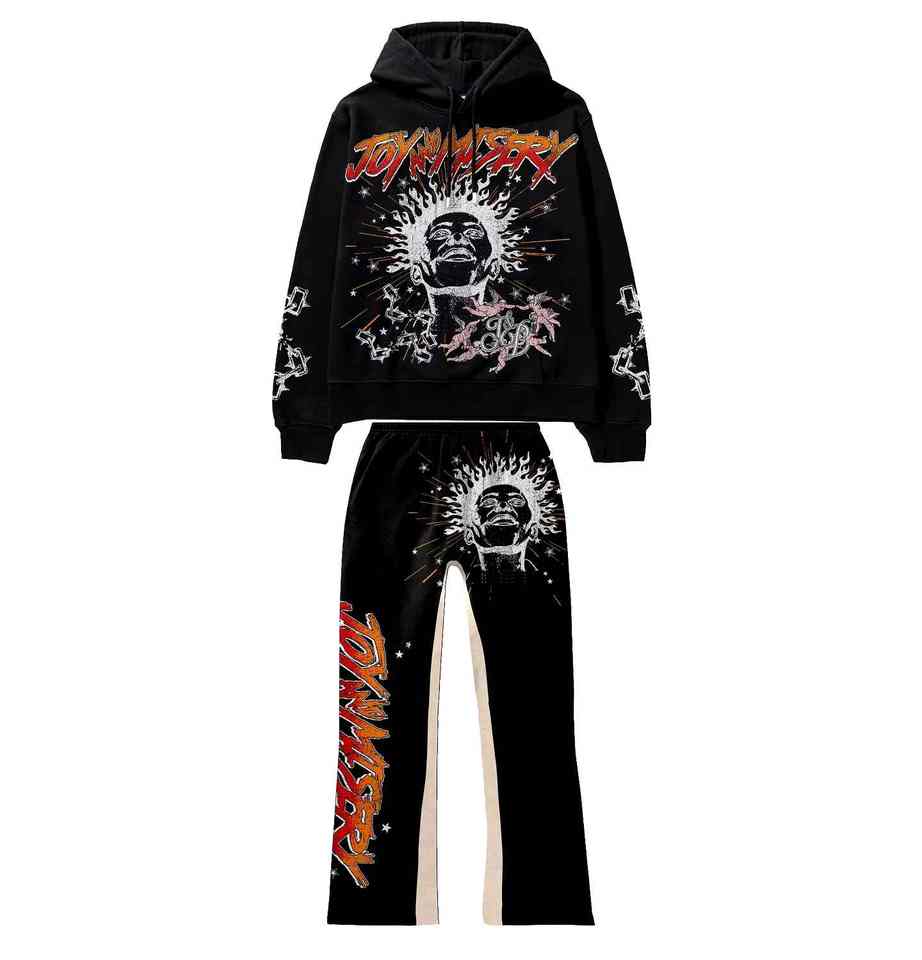 Custom Made Men's Casual Streetwear Oversize Jogger Tracksuit Baggy Triple Zip up Hoodie with Rhinestone Woven for Summer