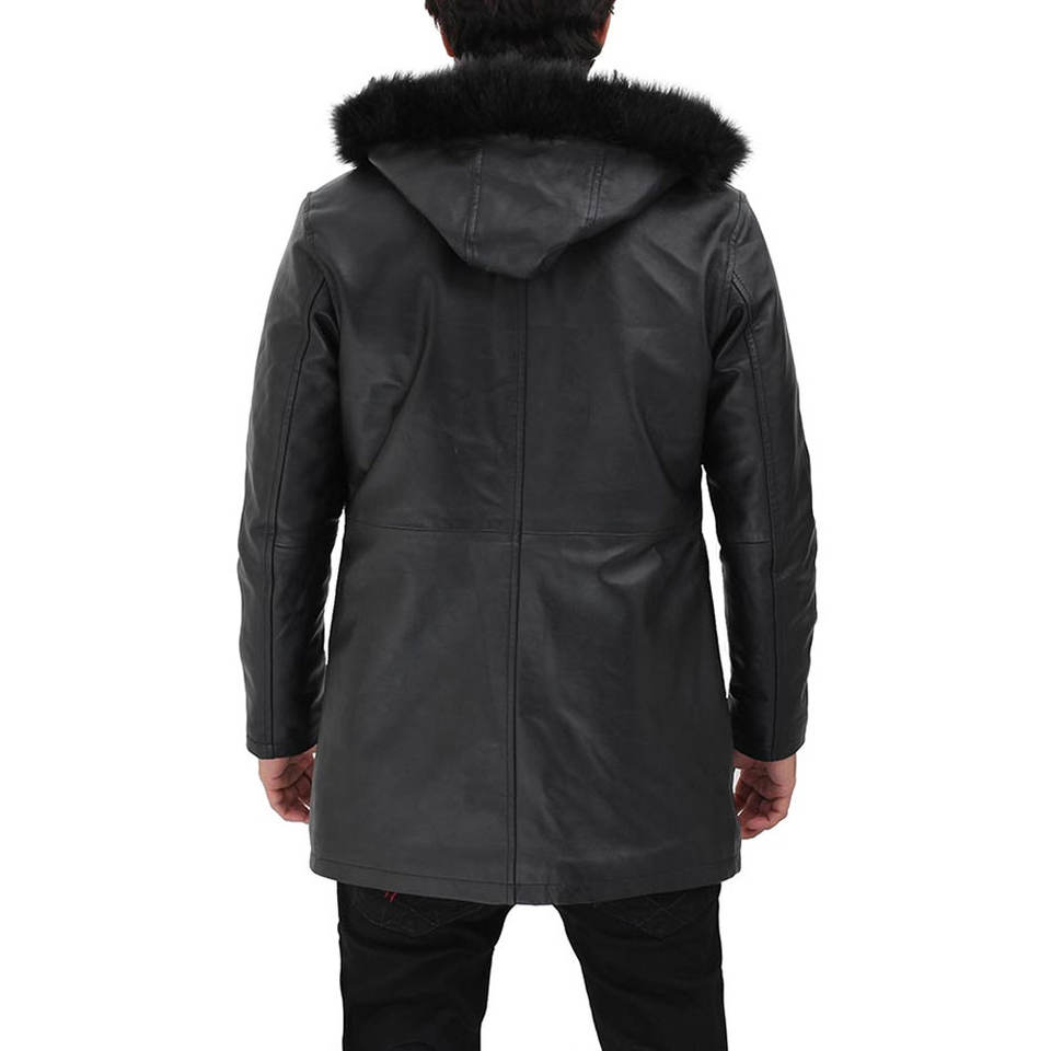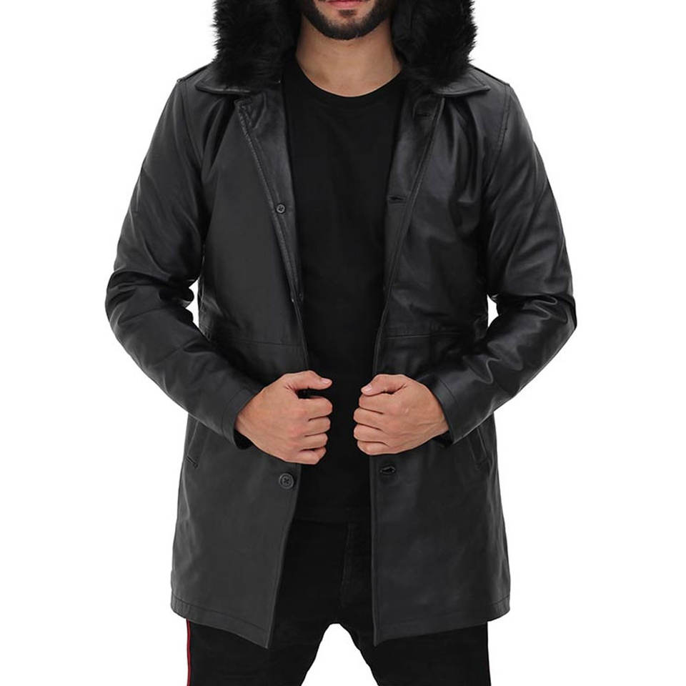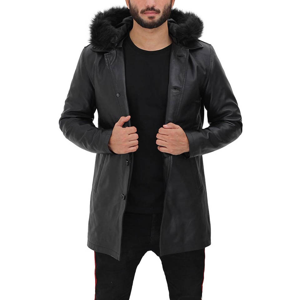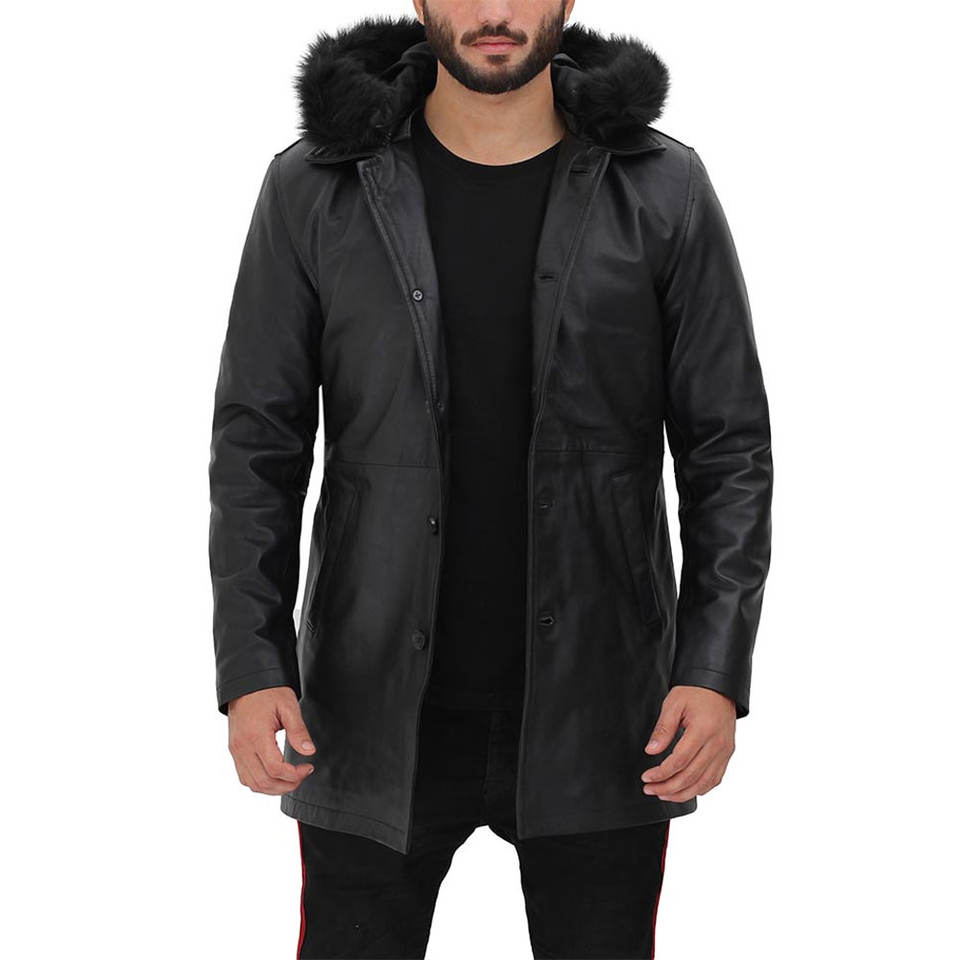 Manteau long sur mesure pour homme en cuir de vachette avec capuche, col montant, logo frontal, respirant, coupe régulière, coupe-vent, pour l'extérieur, hiver 2026, dernière collection