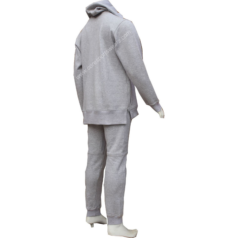 Costume de jogging à capuche gris chiné sur mesure pour hommes, survêtement de sport à manches longues 100% coton pour l'hiver