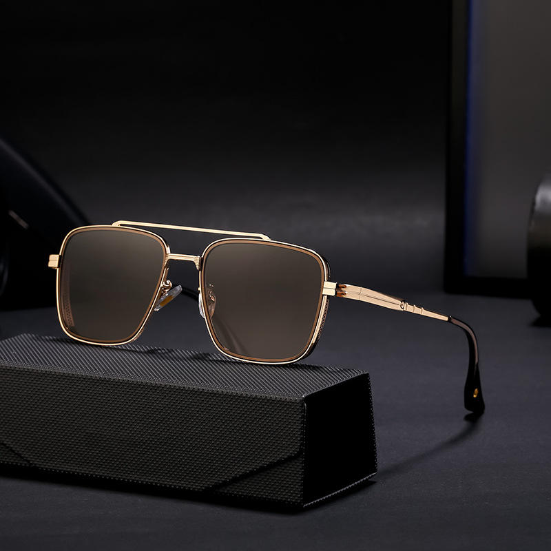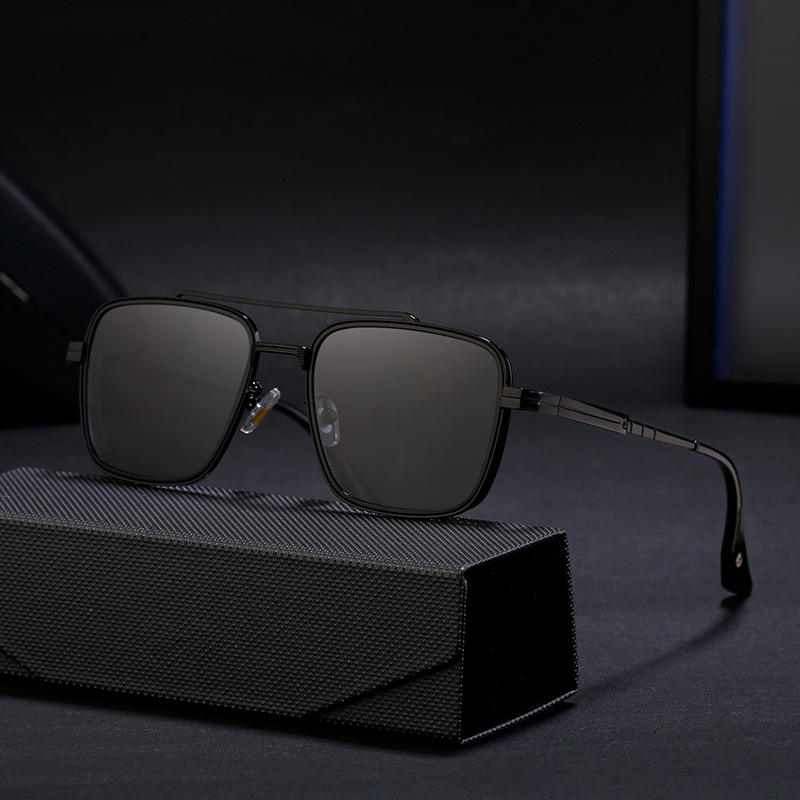 Lunettes de soleil carrées sur mesure pour hommes, verres PC UV400, monture noire, style rétro punk, vente en gros transfrontalière, emballage en boîte