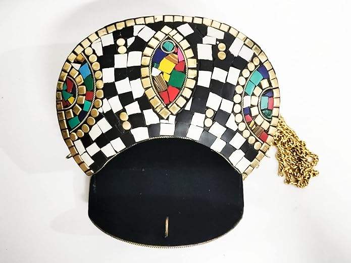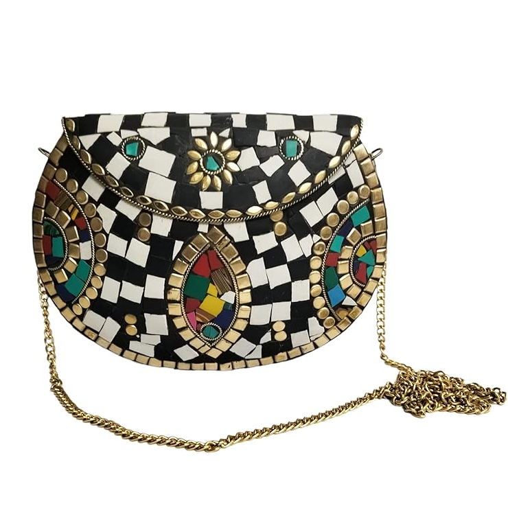 Sacs tribaux en mosaïque faits sur mesure avec des embellissements en résine et en pierre, idéal pour les magasins d'accessoires de mode pour la revente