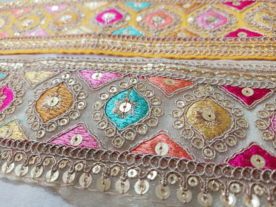 Rubans brodés multicolores sur mesure à motifs géométriques, idéal pour les robes d'enfants