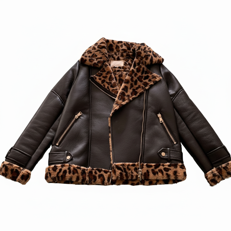 Veste en cuir personnalisée à texture de peau de léopard Veste de bombardier d'hiver élégante à la mode Fabricant de veste en cuir pour dames