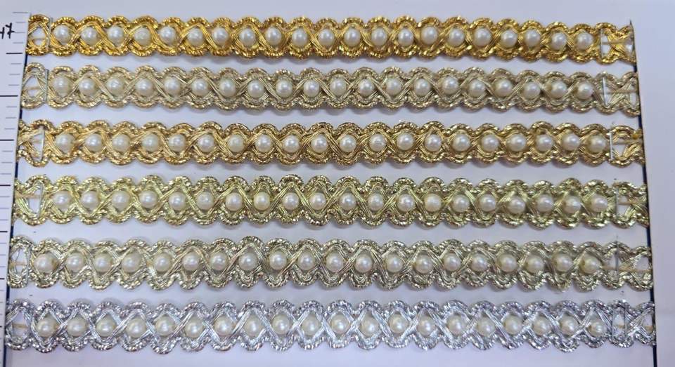 Rubans et lacets brodés à la machine sur mesure avec perles attachées et en 5 couleurs pour robes de mariée