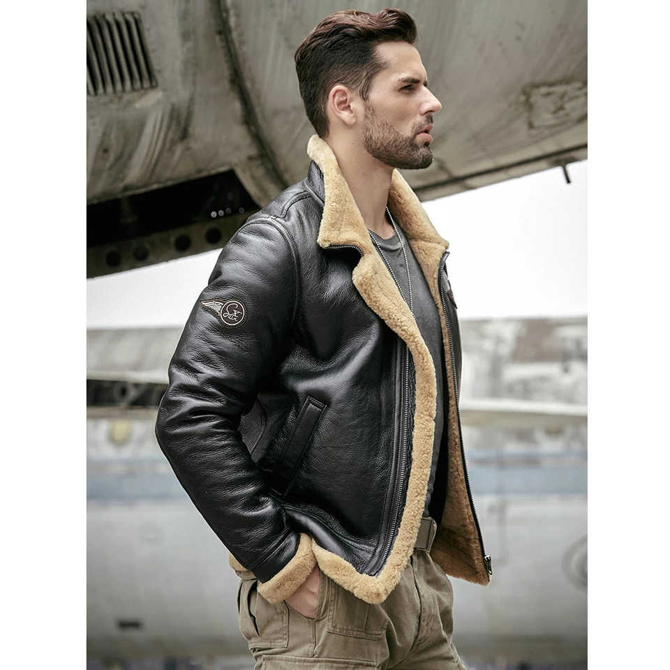 Service ODM sur mesure Logo personnalisé & Deign blouson aviateur B3 en peau de mouton pour hommes manteau veste longue aviateur