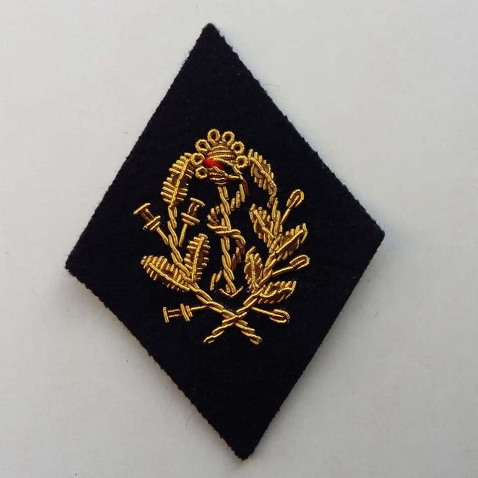 Badges en fil de bullion faits sur mesure, OEM, faits à la main, mode, broderie à la main, badges en fil de bullion or et argent, tissu sergé, écusson