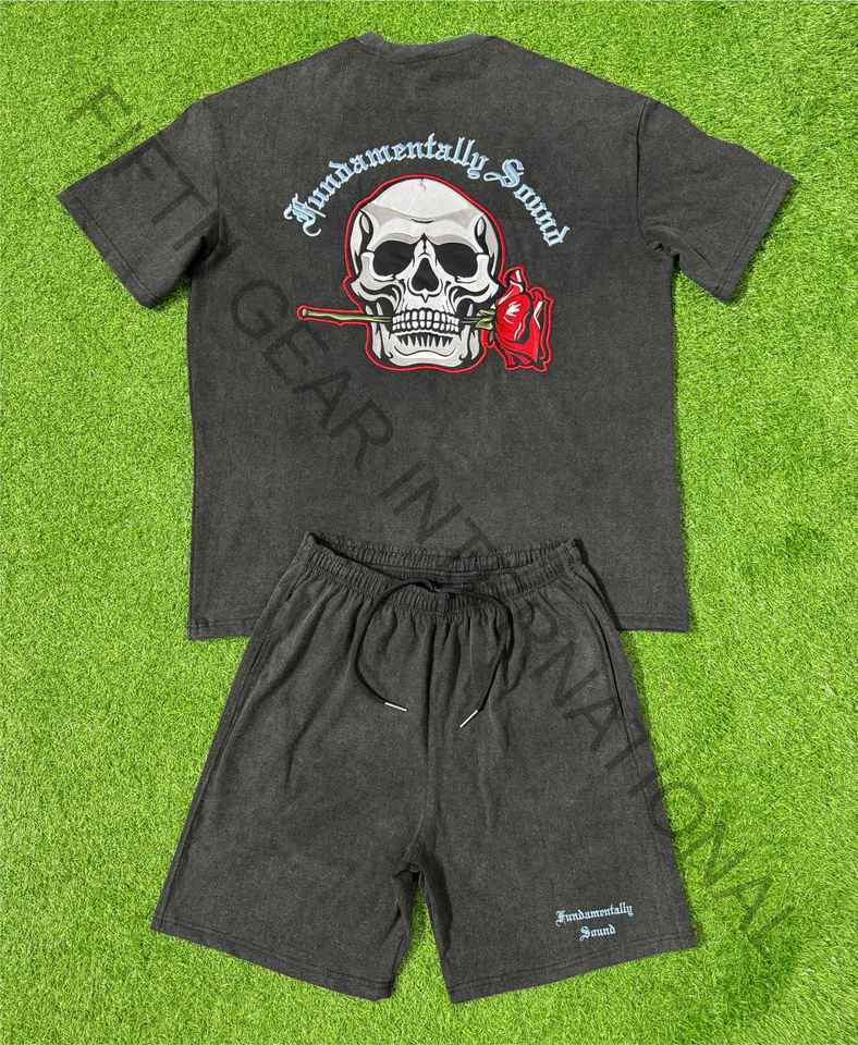 T-shirt Boxy surdimensionné sur mesure court unisexe Vintage 2 pièces ensemble été Streetwear survêtement à manches courtes t-shirt court grande taille