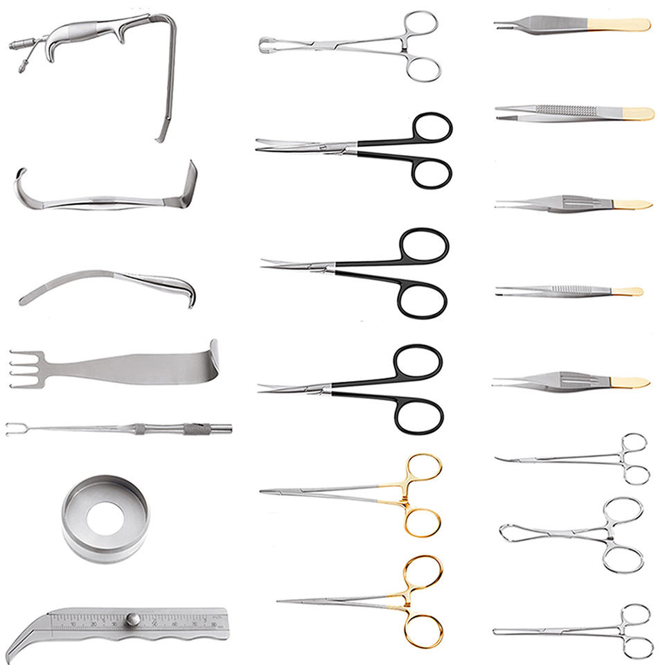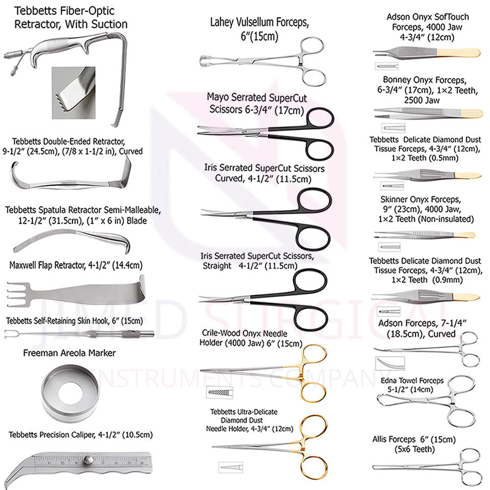 Kit d'instruments de chirurgie plastique manuel en acier inoxydable professionnel personnalisé | Ensemble esthétique pour la poitrine Tebbetts | 21 pièces réutilisables de haute qualité
