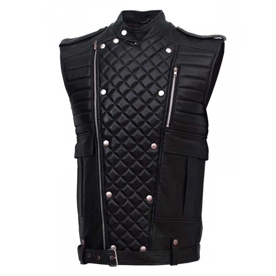 Gilet et veste pour homme sur mesure, grande taille, design unique, 100% cuir, sans manches, gilet chauffant pour moto, hiver, poches avant