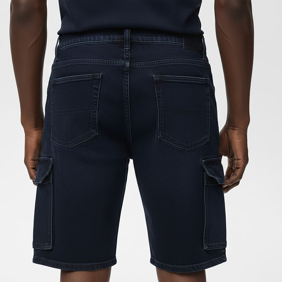 Shorts en jean bleu foncé délavé sur mesure, grande taille, avec poches cargo, légers et de haute qualité, pour homme, parfaits pour l'été.