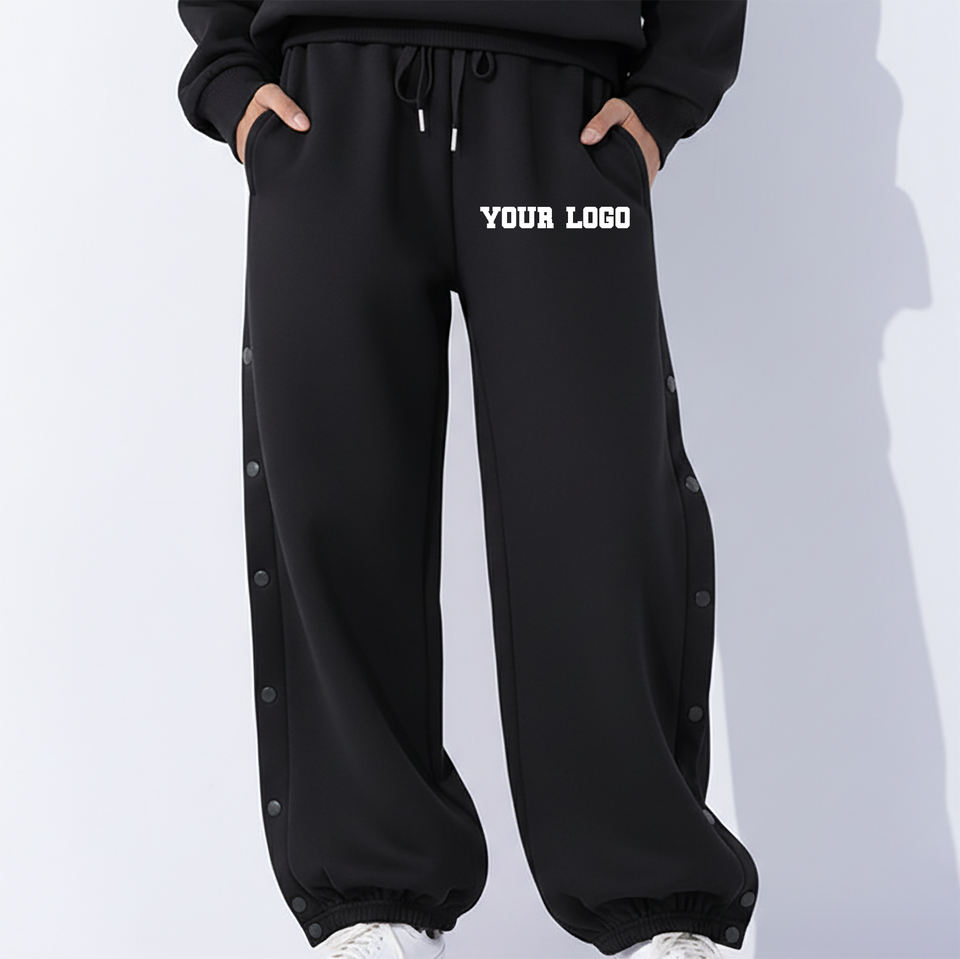 Pantalon pour femme en molleton polyester/coton sur mesure, coupe régulière, couleur unie, taille élastique, hiver, hip-hop, haute qualité