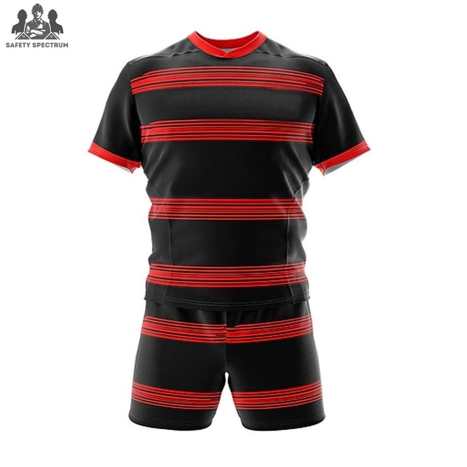 Ensembles d'uniformes de rugby pour hommes sur mesure, respirants, à séchage rapide, écologiques, de haute qualité, 100 % polyester, couleurs personnalisées, logo tendance