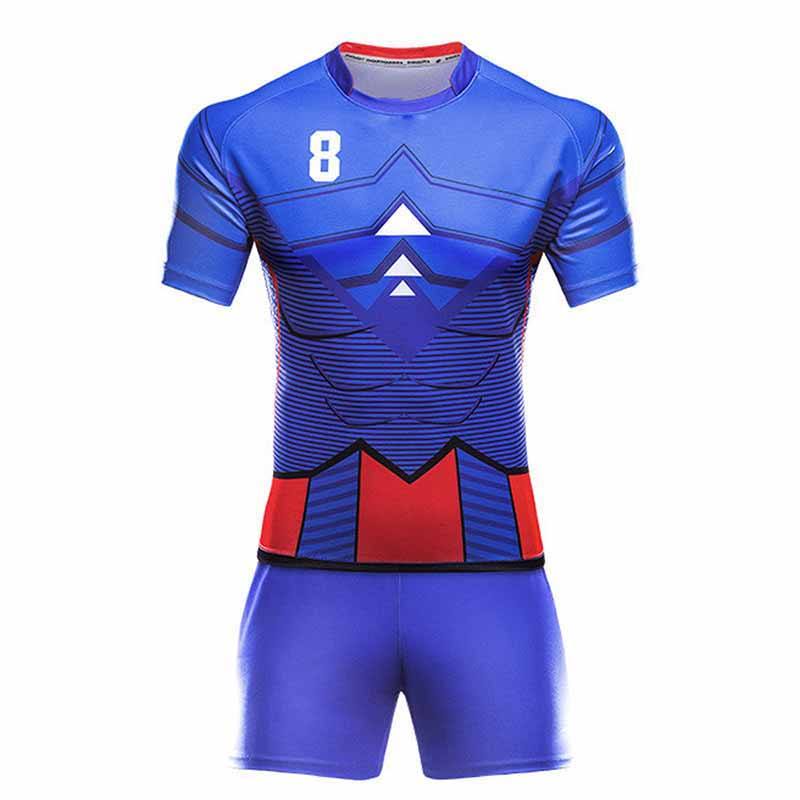 Ensemble d'uniformes de rugby sur mesure, respirant, séchage rapide, impression de logo personnalisé, haute qualité, 100% polyester.