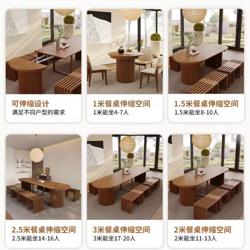 Table à manger télescopique en bois massif sur mesure, rectangulaire, convertible, mobilier de salle à manger haut de gamme pour villa