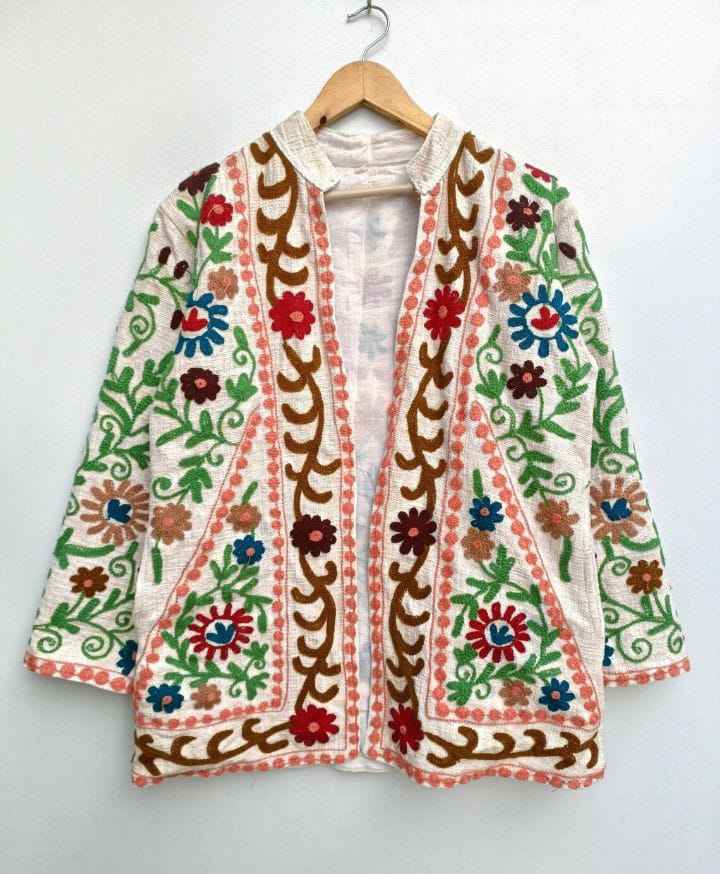 Vestes vintage imperméables faites à la main en laine brodée Suzani sur mesure pour les créateurs de vêtements, revente