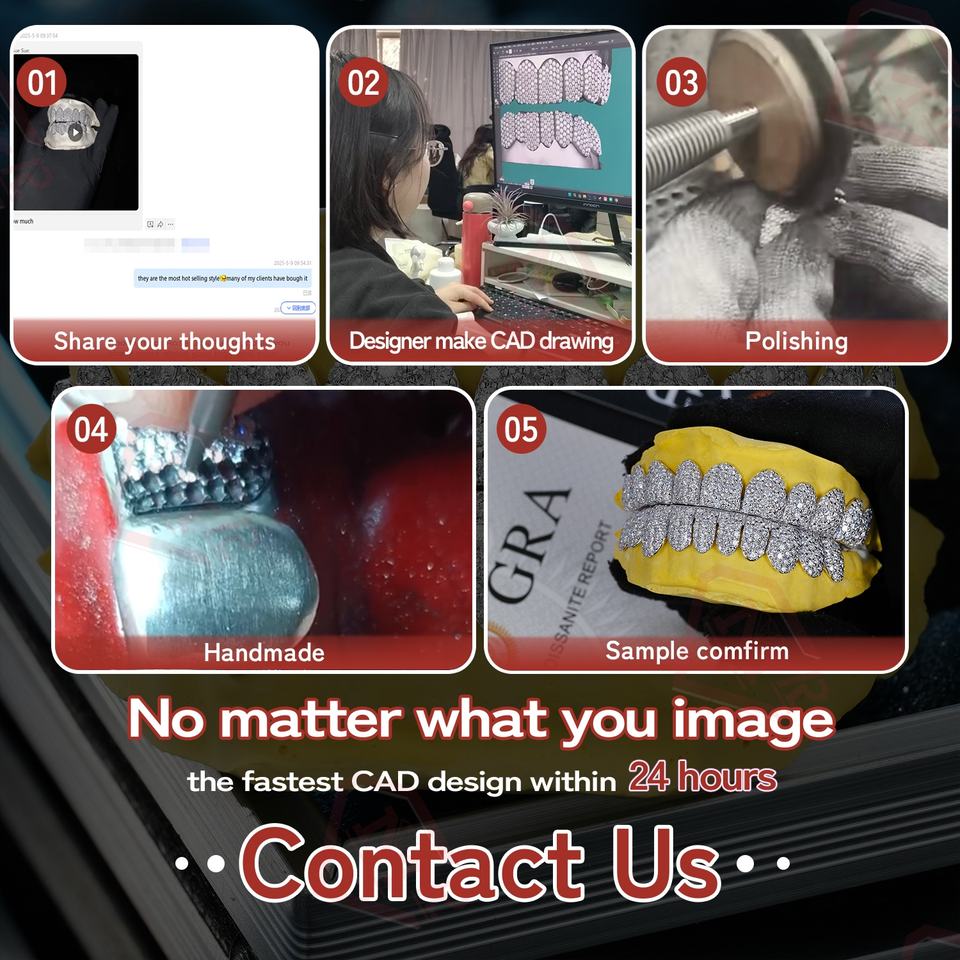 Grillz Dentaires Sur Mesure Bijoux VVS Moissanite Diamant Dents Grillz 10k 14k 18k Or Argent Iced Out pour Dents