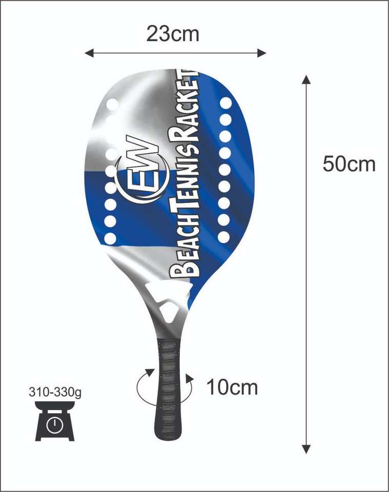 Raquettes de tennis de plage sur mesure, face de 20 mm, poids de 320-340 g, longueur de 50 cm, poignée en fibre de carbone, filet en fibre de verre