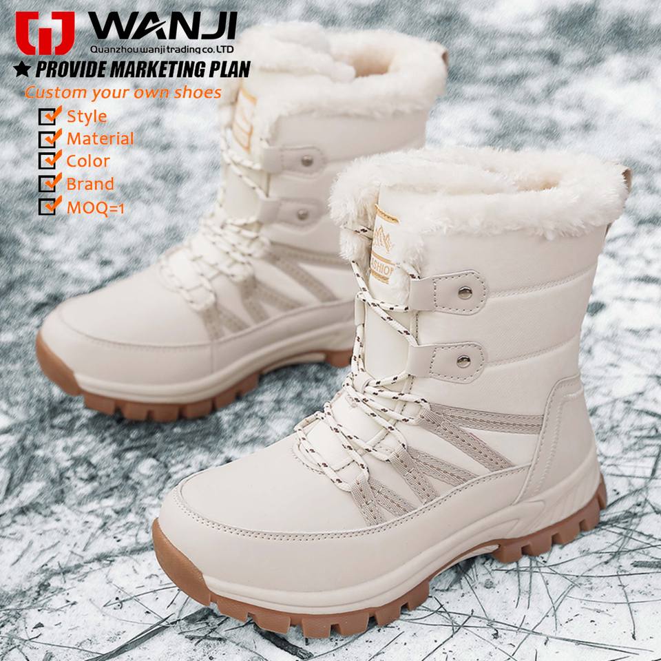 Bottes de neige sur mesure à semelle épaisse pour femmes, extra épaisses, antidérapantes, mi-mollet, chaudes et résistantes au froid