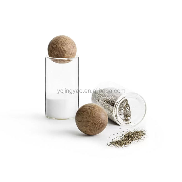 Sels et poivrières en verre borosilicate transparent sur mesure avec bouchon en chêne