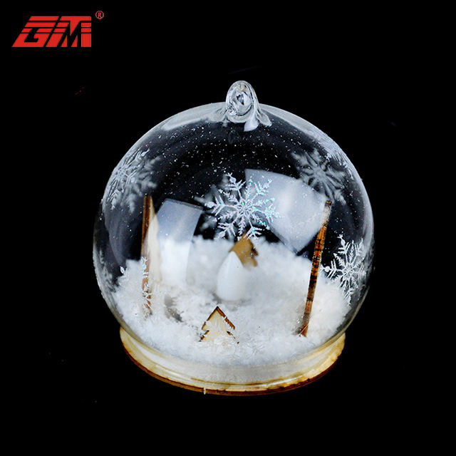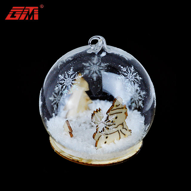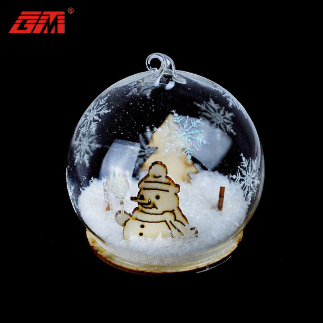 Boules d'ornement de Noël en verre transparent personnalisé personnalisé en gros avec bonhomme de neige en bois à l'intérieur