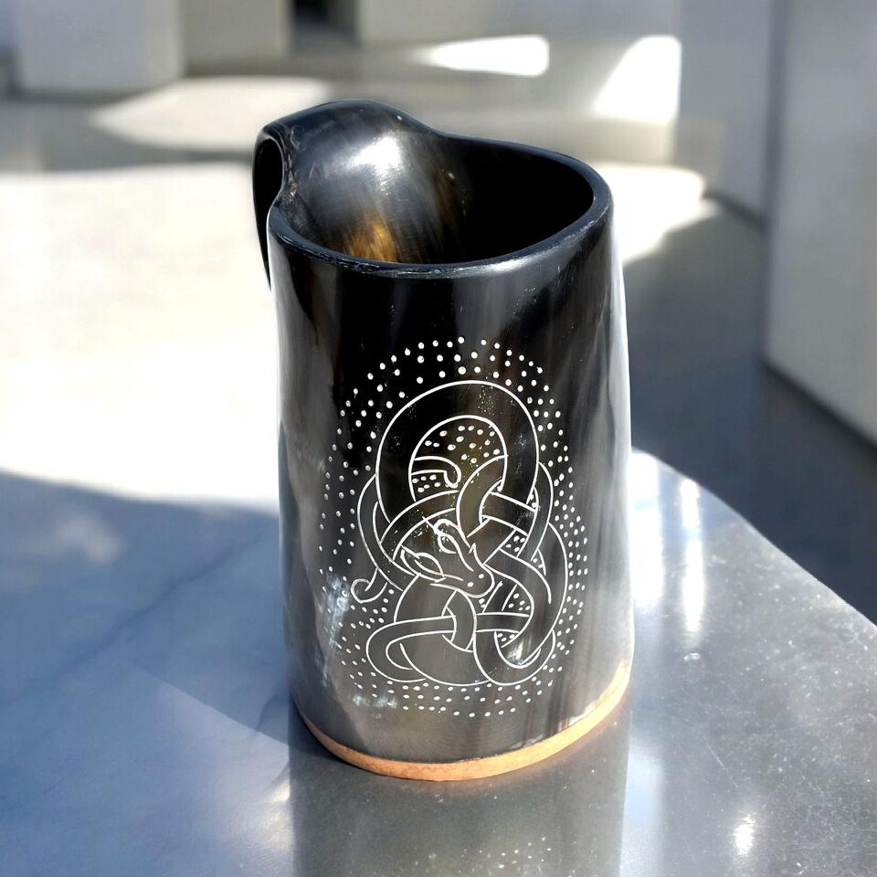 Fait sur mesure avec support gravé à la main corne à boire et corne à boire tasses en cornes de buffle idéal pour les magasins Viking