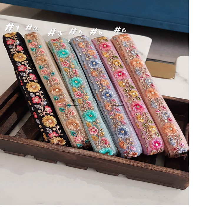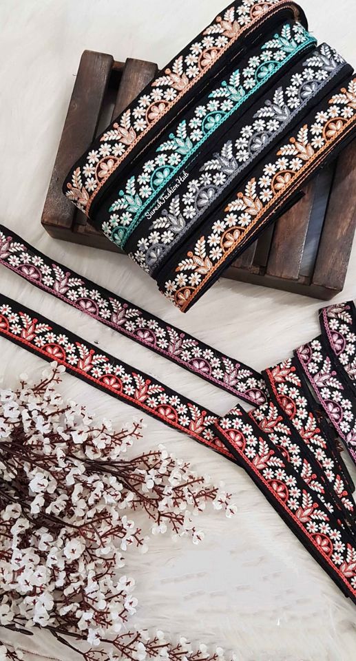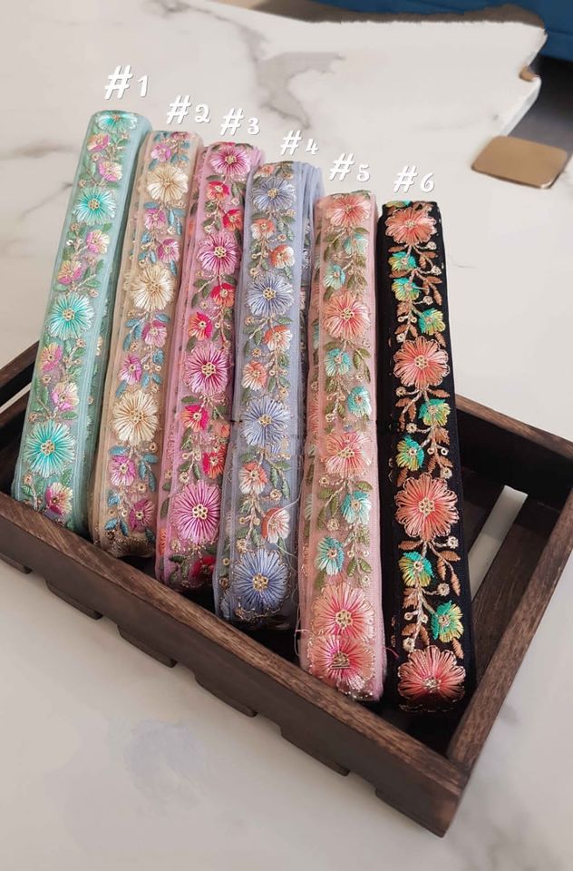Fait sur mesure en six lacets en organza brodés en couleurs avec paillettes multicolores de largeur écologique de 100mm