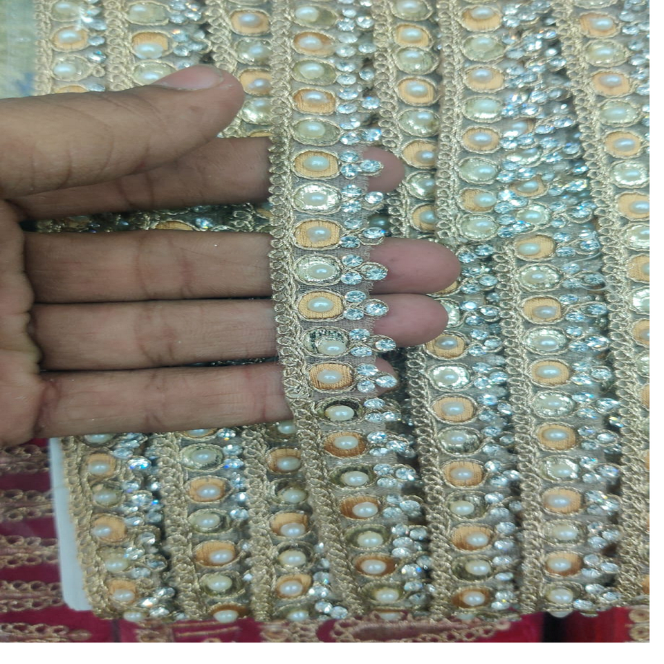 Fait sur mesure avec bordure en fil d'or et grande machine de travail de la pierre rubans brodés et lacets en couleurs pour robes de mariée