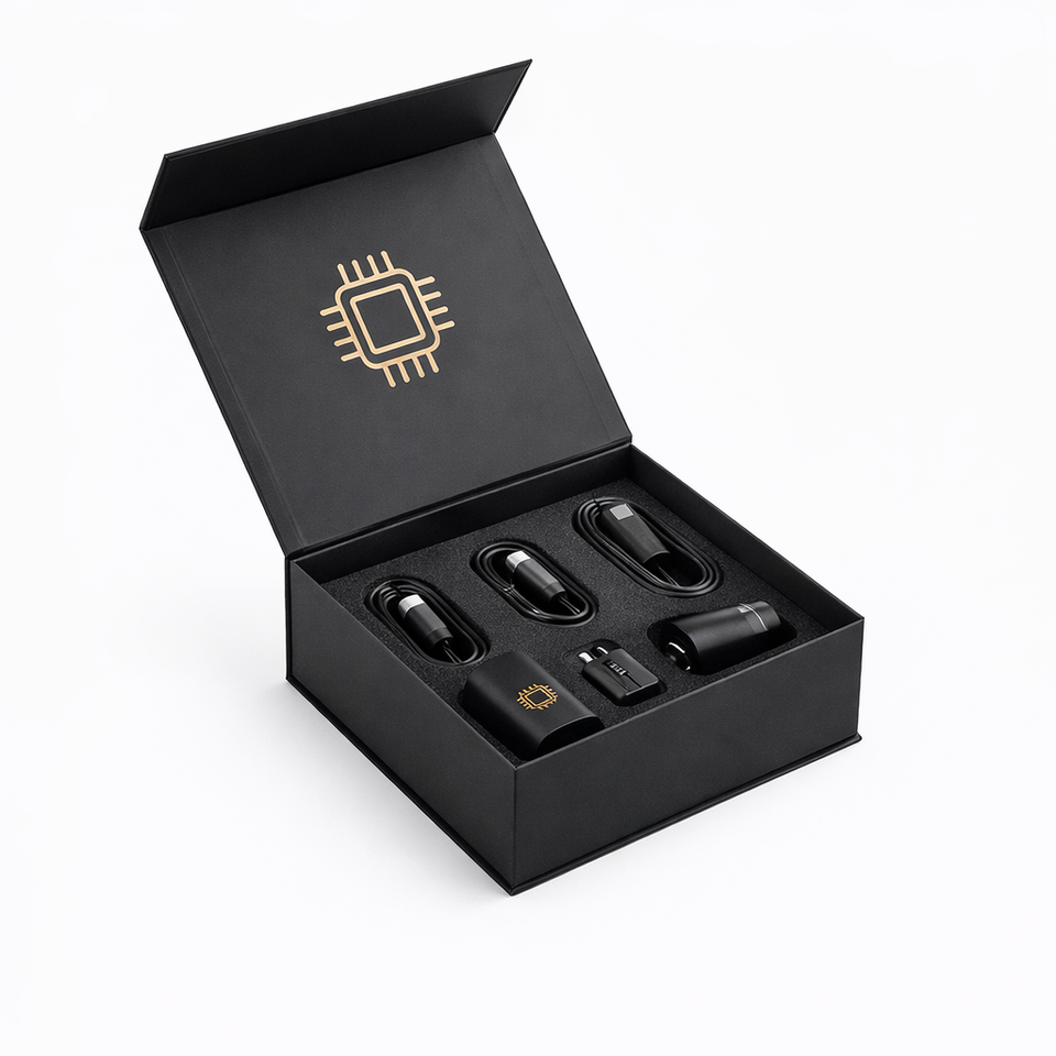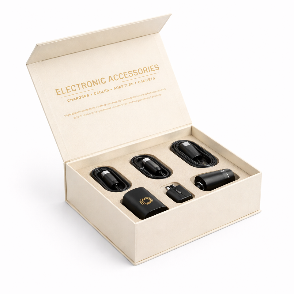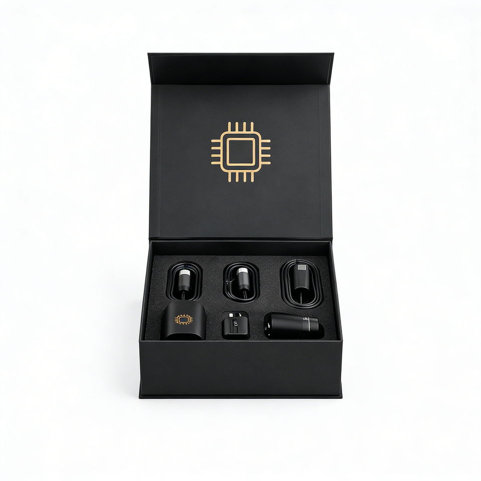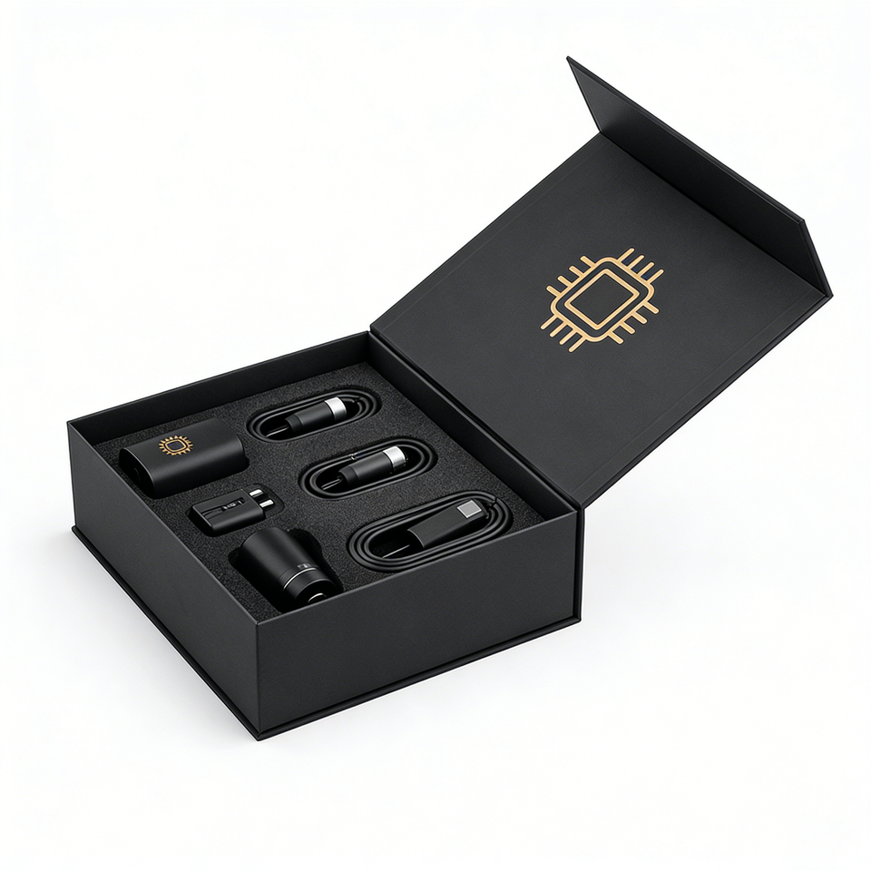 Boîte rigide pliable magnétique personnalisée pour accessoires de téléphone portable, câble de chargeur, écouteurs, emballage électronique