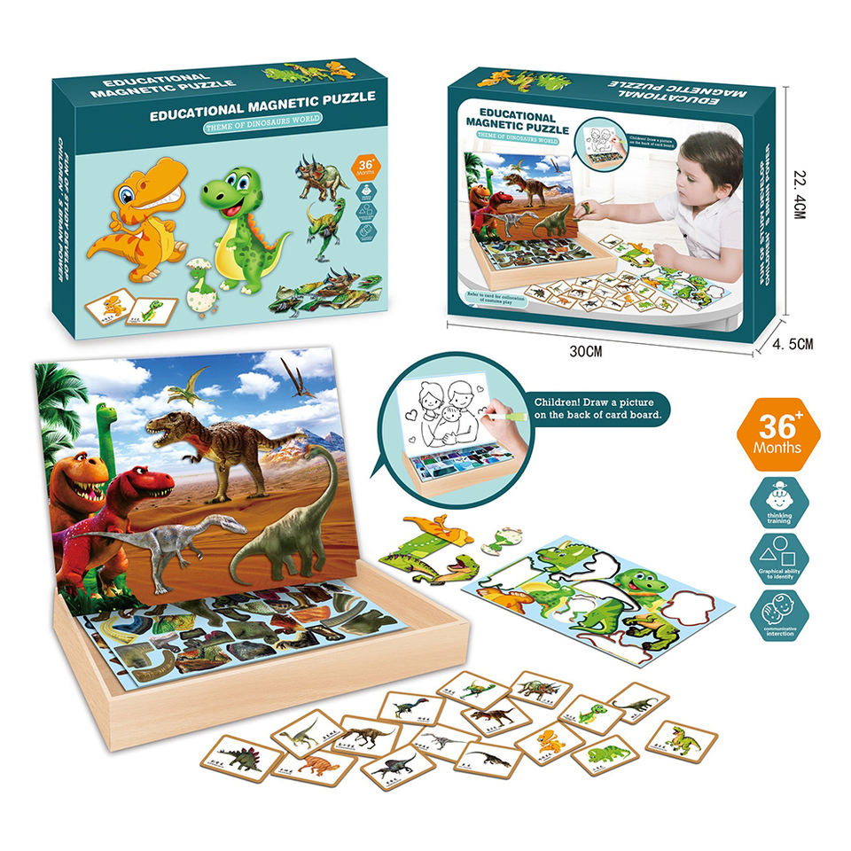 Description:Livre de Puzzle magnétique personnalisé pour enfants, Puzzle magnétique dinosaures avec 7P