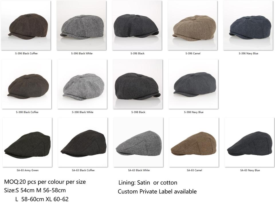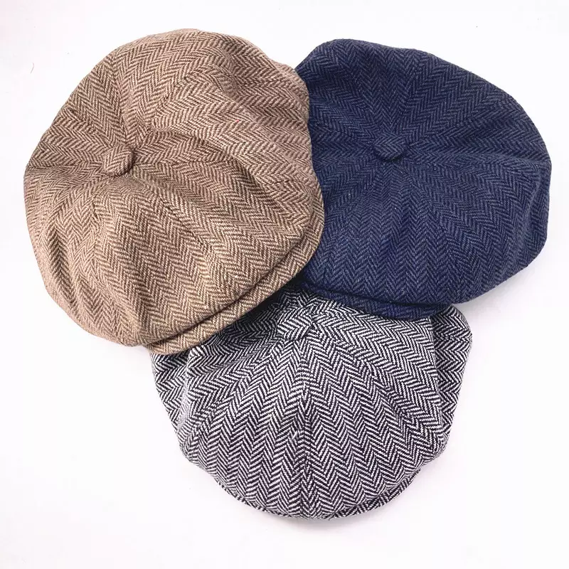 Casquette personnalisée Gatsby en tweed de laine Cabbie Ivy Hats Wholesale Peaky Blinder Hat Baker Boy 8 Panels Mens Herringbone Newsboy Caps