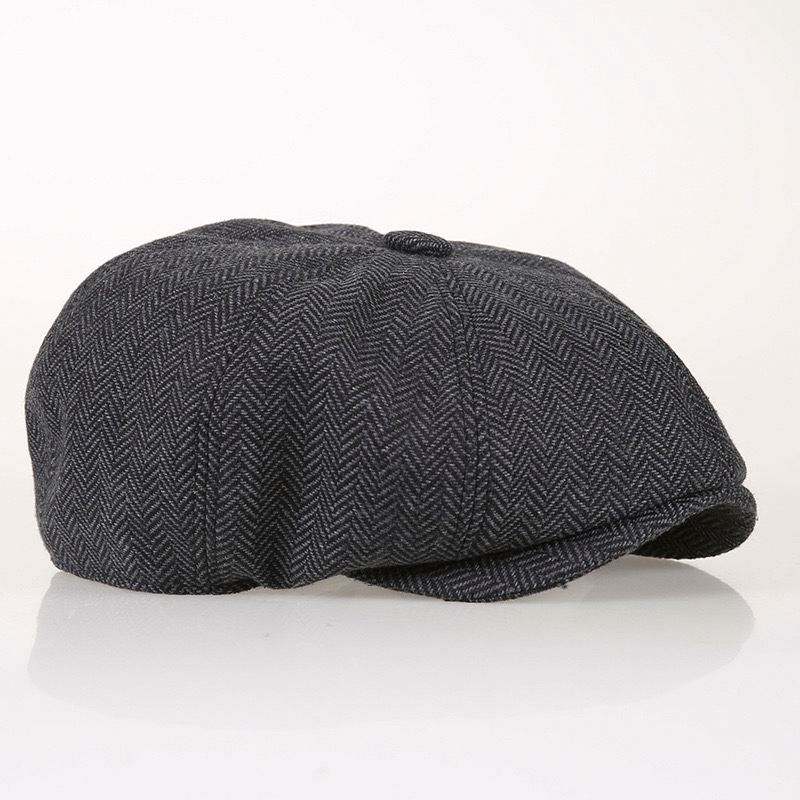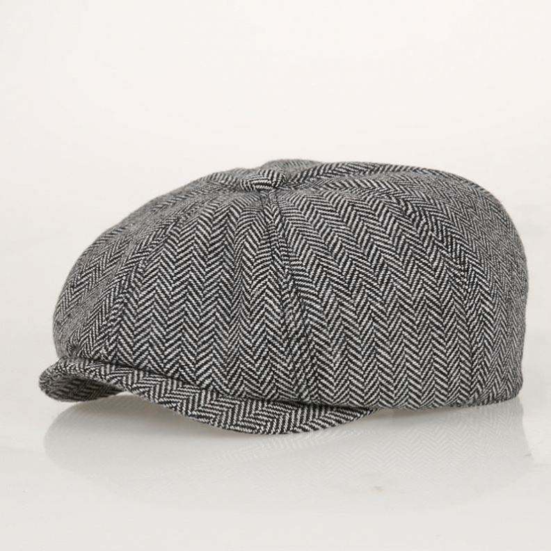 Casquette Gatsby personnalisée pour homme en laine tweed, style Cabbie Ivy, Peaky Blinder, Baker Boy, 8 panneaux, motif chevrons, vente en gros