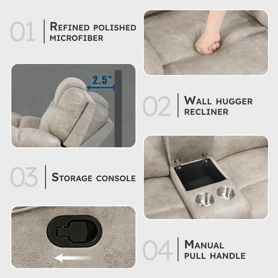Canapé-lit double inclinable manuel personnalisé en microfibre, fauteuil inclinable mural avec console centrale pour salon