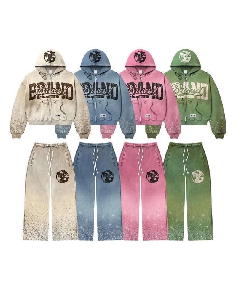 Fabrication sur mesure Survêtement évasé 2 pièces à fermeture éclair sérigraphié de haute qualité Design personnalisé combinaison évasée à bas vieilli
