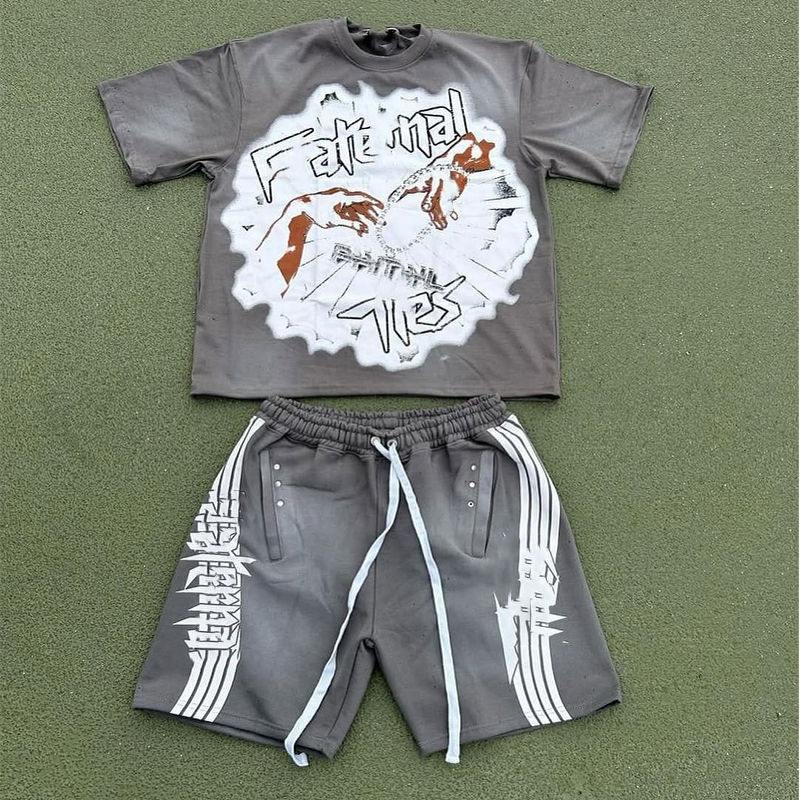 Fabrication sur mesure Vente en gros T-shirts sérigraphiés High Street T Shirt Ensemble de shorts en coton à manches courtes tendance pour l'été