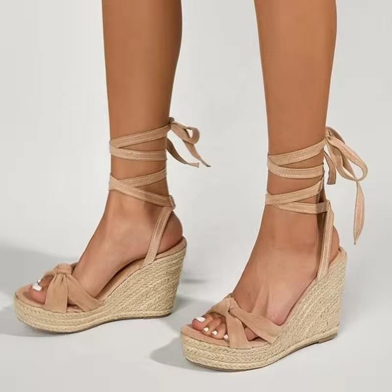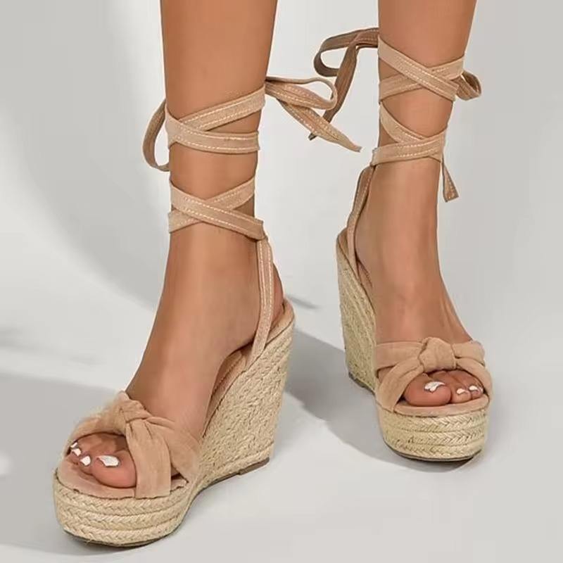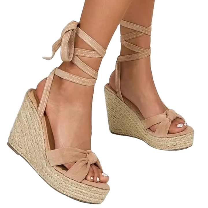 Sandales compensées en espadrille à plateforme, couleur abricot, à talon haut, à bout ouvert, en dentelle, design personnalisé par le fabricant, pour la mode estivale