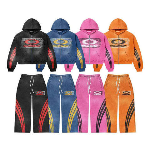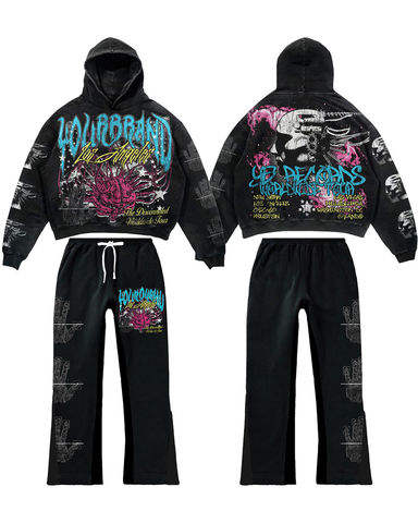 Fabricant personnalisé Sweat à capuche avec strass à double taille et pantalon de survêtement évasé Ensemble surdimensionné pour hommes Baggy