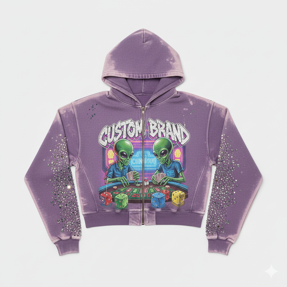 Hoodies personnalisés avec fermeture éclair et strass français effet soleil délavé, coupe ample, délavage acide pour homme