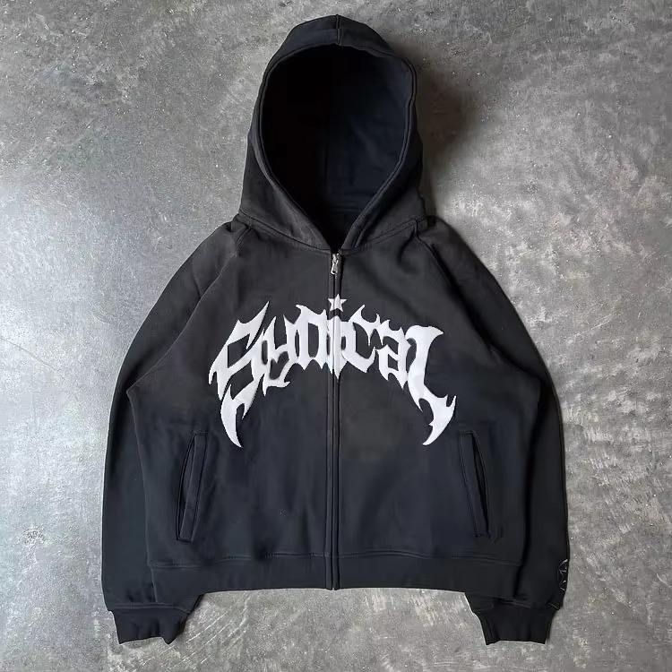 Sweat à capuche surdimensionné pour homme, personnalisé, à manches longues, effet délavé soleil et usé, avec strass, style designer, délavé à l'acide, zippé