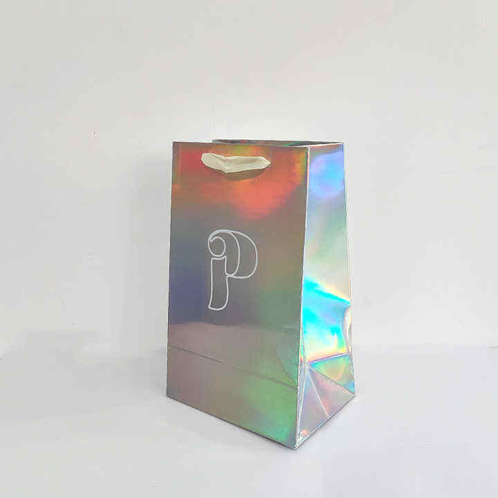 Custom Manufacturer's Holographic Glitter Slim Gift Paper Bags with Logo Premium Product Category