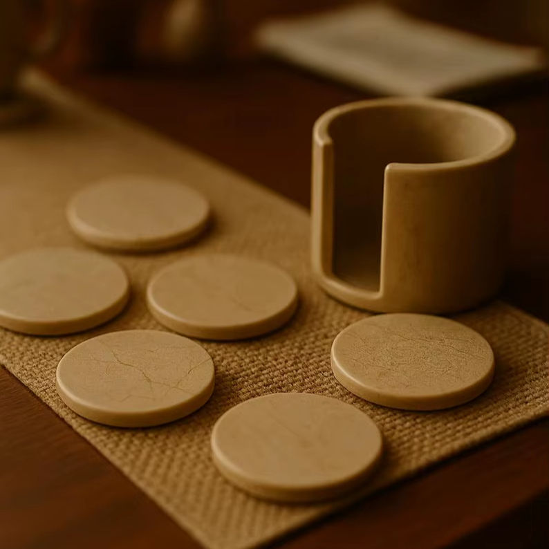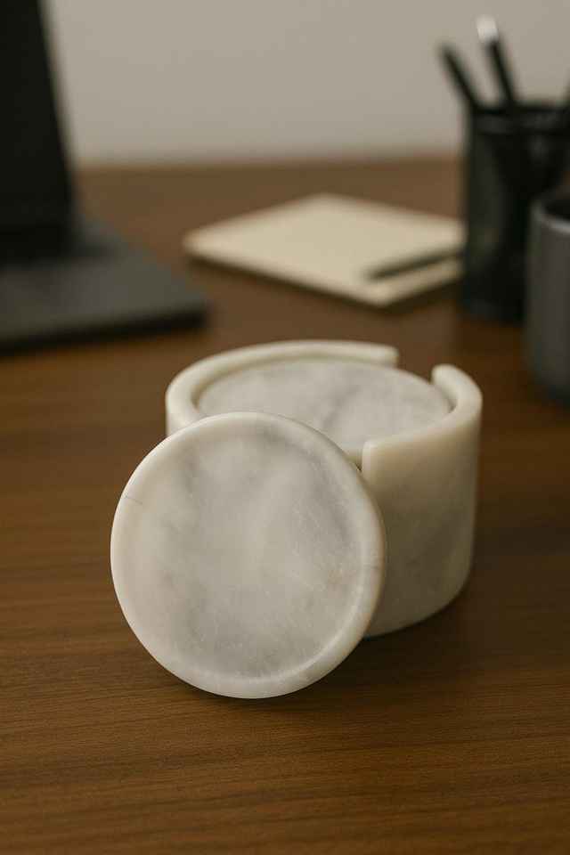Dessous de verre en marbre personnalisé lot de 6 sous-verres ronds en onyx avec support Décoration de table minimaliste Cadeau pour pendaison de crémaillère