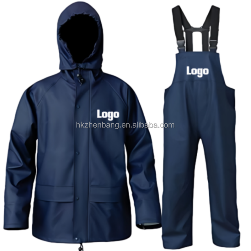 Combinaison de pêche en PU/PVC imperméable personnalisée pour la pêche en mer et l'aquaculture, avec pantalon à bretelles, tenue de pluie pour la pêche, équipement pour les conditions météorologiques difficiles